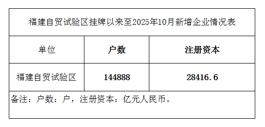 福州自贸试验区挂牌以来至2025年10月新增企业情况表