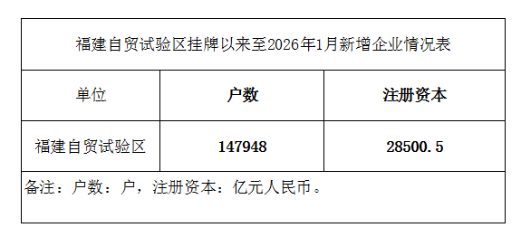 福建自贸试验区挂牌以来至2026年1月新增企业情况表