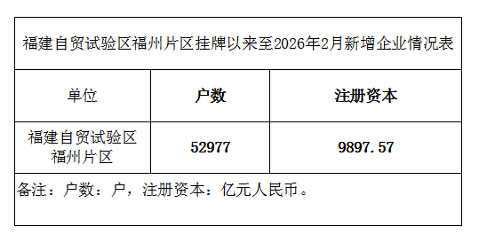 福建自贸试验区福州片区挂牌以来至2026年2月新增企业情况表