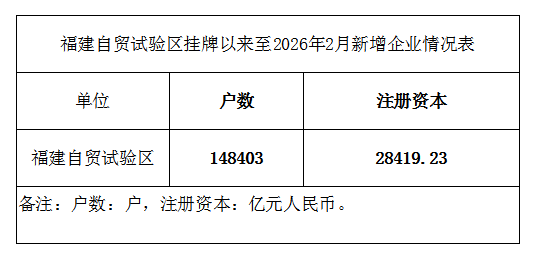 福建自贸试验区挂牌以来至2026年2月新增企业情况表