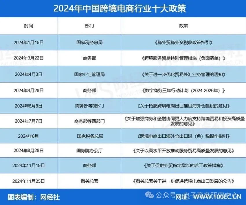 2024年,跨境电商行业政策环境不断优化,国家各部门发布了一系列政策来规范和促进跨境电商行业的发展,如海外仓建设意见出台等等。