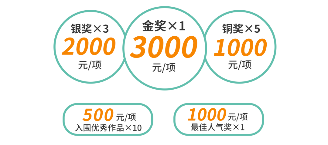 大赛坚持精神鼓励和物质奖励相结合的原则,对获奖设计者给予颁发荣誉证书及奖金,以上奖金均为人民币税前金额。