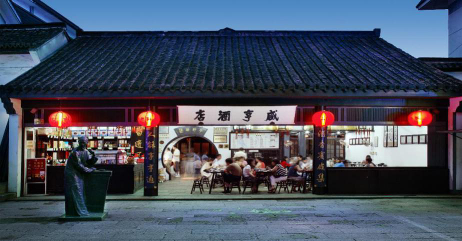 结合独特的地缘优势和历史文脉,追求文化“活化”,强化“文化享受”和“体验感”,使咸亨酒店成为解读鲁迅文化的原典钥匙。注册的孔乙己铜像商标成为中国第一个立体商标,现放置于堂吃门口,游客到此必定会选择与铜像合影留念,成为网红打卡点。通过投影播放浙江越剧团茅威涛主演的越剧《孔乙己》,强化品牌影响力,宣扬主题氛围,客人进入酒店就能感受到浓浓的越味风情。客人可以喝着大碗茶,看着社戏表演,“乌篷、黄酒、小桥、流水”,风景独好、意趣盎然,极具水乡风情。