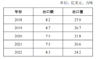 表1 2018—2022年印度茶叶出口情况