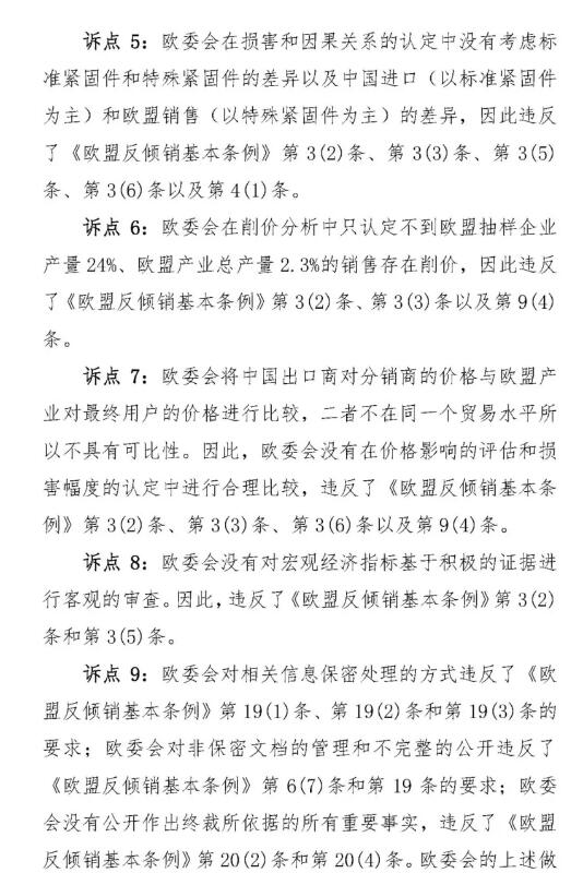 2009年7月31日,中国政府向WTO提起磋商请求,将欧盟对我紧固件反倾销措施诉诸WTO争端解决机制(DS397)。
