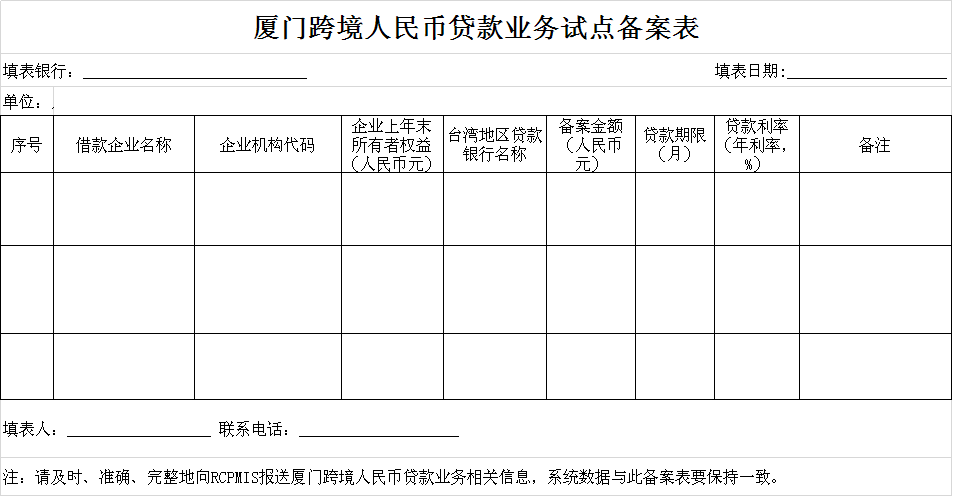 5.《厦门跨境人民币贷款业务试点备案表》(附表);