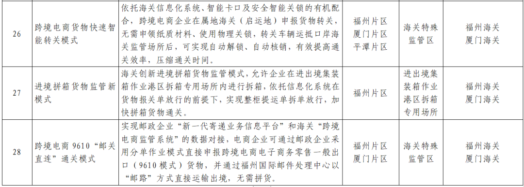 为加快实施自贸试验区提升战略,进一步发挥自贸试验区改革开放综合试验平台引领示范效应,经研究,确定福建自贸试验区第十批28项制度创新成果在省内复制推广,现就有关事项通知如下: