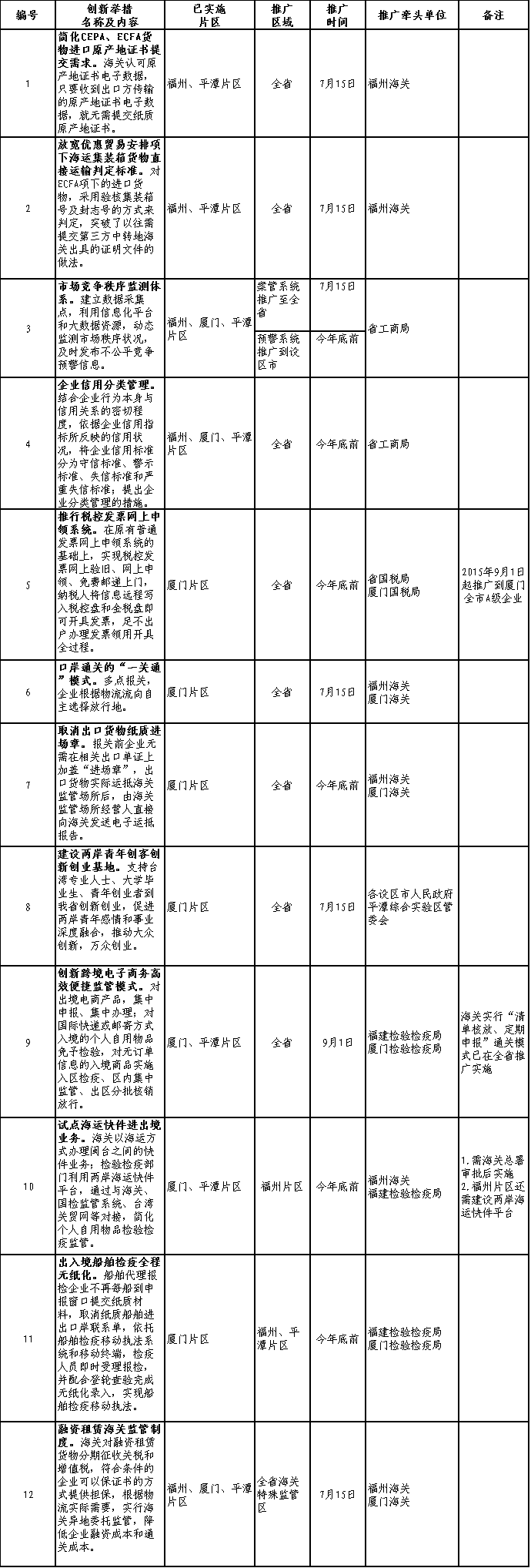 经省政府批准,福建自贸试验区第二批12项改革创新成果分批、分期在省内其它区域推广。现就有关事项通知如下: