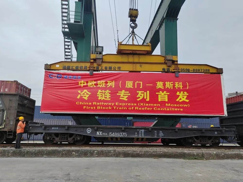 10月19日,中欧(厦门)班列首列冷链专列从厦门自贸片区海沧园区驶出,经满洲里口岸出境后,预计15天可抵达俄罗斯莫斯科,这是福建省发出的首列出口冷链国际班列。