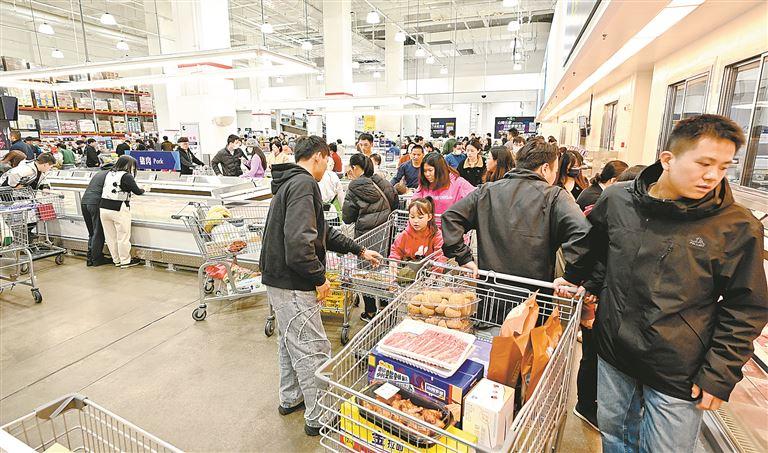 昨日上午11时许,在厦门自贸片区的厦门山姆会员商店,购物者络绎不绝,选购各自心仪的商品,新鲜、种类繁多的商品货源充足。在水果、肉类、海鲜、酒水饮料等商品区,人头攒动,市民消费热情较高。