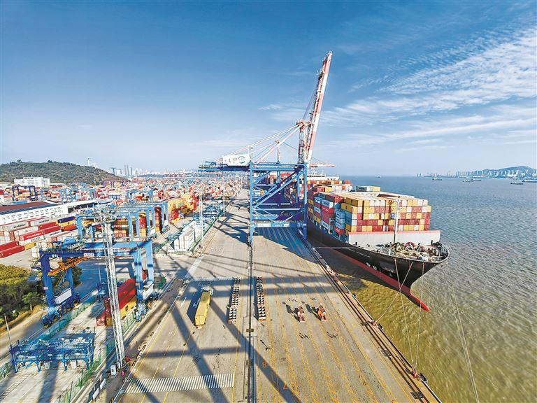 厦门自贸片区靠前服务,打造优质营商环境,集装箱巨轮频频停泊在厦门港。