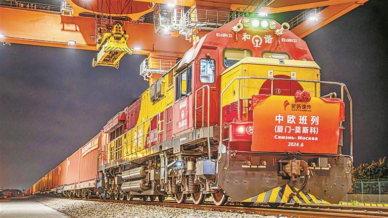 中欧班列(厦门)是厦门聚焦服务高质量共建“一带一路”,着力打造的重点外贸平台之一。在当前外部环境复杂严峻,国际航运面临不确定性的背景下,中欧班列(厦门)提供了更加高效顺畅的物流解决方案,相较海运可缩短10天-20天的运输时间,更好地服务产业链供应链。