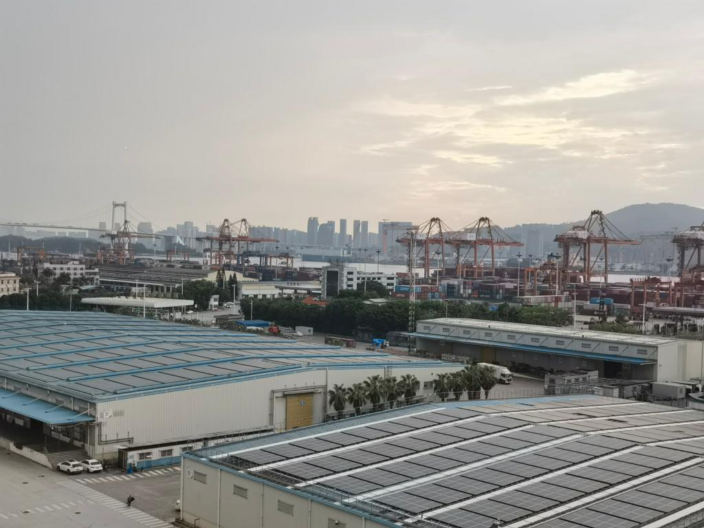 图为象屿综保区内仓库屋顶的光伏发电设备。