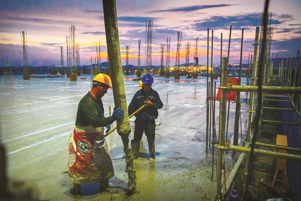 近日,平潭新兴产业园区标准化厂房项目(二期)进入主体结构封顶冲刺阶段。现场,工程车来回穿梭,工人们正在进行墙柱钢筋绑扎等工作,忙得不可开交。