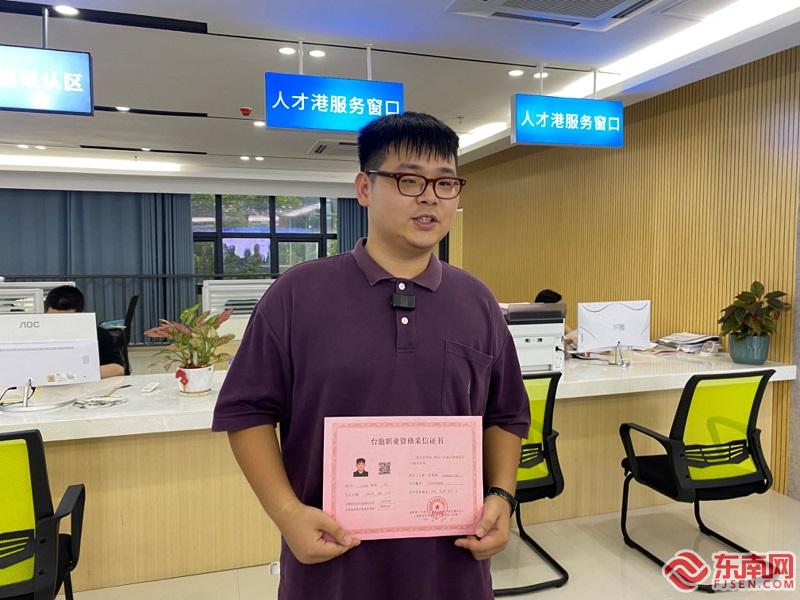 “大陆工种分类有268项,等级一至五级,台湾地区工种分类有543项,等级分为甲乙丙,因此台湾的资格证拿到大陆不被认可,导致台胞在大陆就业遇到困难。”台胞职业一体化服务中心工作人员王魁峰介绍,作为全国唯一的对台综合实验区,福建平潭于2018年6月首创推出对台职业资格采信政策,全国首张“台湾地区职业资格证书采信证明”在平潭颁出。对已取得台湾地区专门职业及技术人员证书并在福建从事相应工作的台胞,可直接比照认定为相应职称,与专业技术人员评审获得的职称具有同等效力。