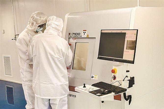 中科飞龙的技术人员检测芯片是否有缺失、气泡和空洞等。