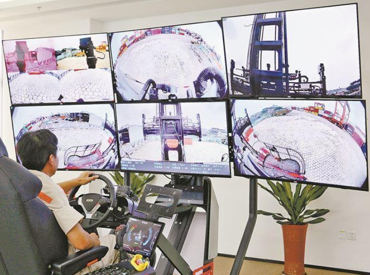 “智能化设备能多角度、零死角实时展现工作状态,像箱顶、拐角等传统设备上的视线盲区,都能直观地在操作屏幕中显示。”龙门吊司机陈金芳告诉记者,有了新设备加持,工作时能更安全、更全面感知作业环境,从而做出更准确的判断和操作,并可实现3个人控制6台龙门吊,作业效率大大提高。