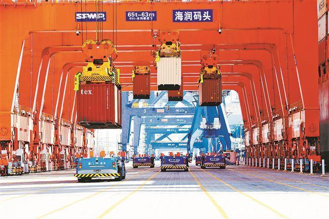 “在智能化模式下,一个集装箱从进入码头、运输至堆场,到吊装上船,每个环节都更加省时。‘超强大脑’高效派单,合理安排设备,让各环节更加顺畅、减少卡顿,减少等待时间。在吊装上船过程中,‘大脑’和‘手脚’密切配合,让车辆与集装箱精准对位,提高作业效率。”码头集团技术管理部经理助理郭延熹说,以升级后的海润码头为例,码头综合作业效率提升10%,单箱变动成本逐年下降,近五年共降低15.1%,码头每年可节约成本约3004万元。