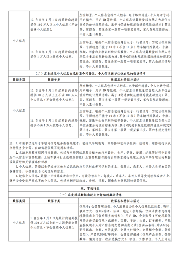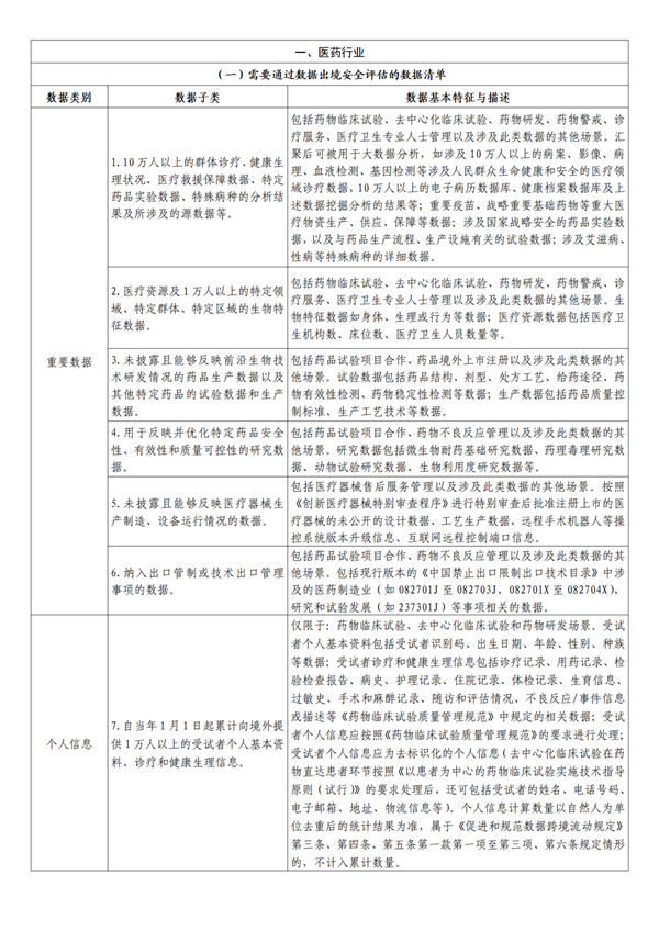 (一)需要通过数据出境安全评估的数据清单,主要包括: